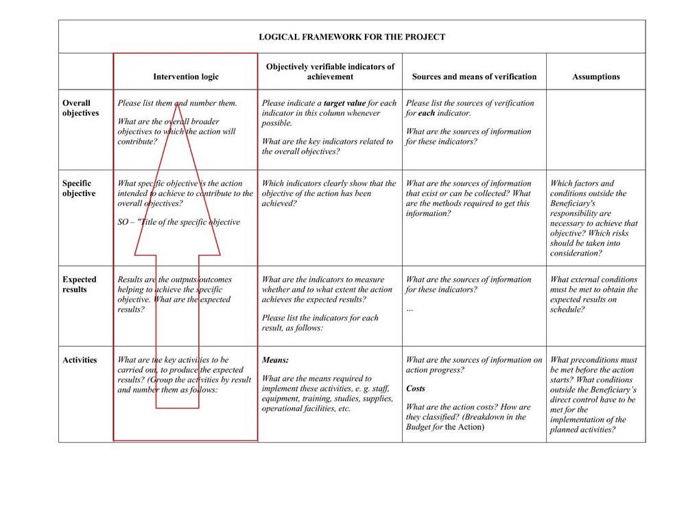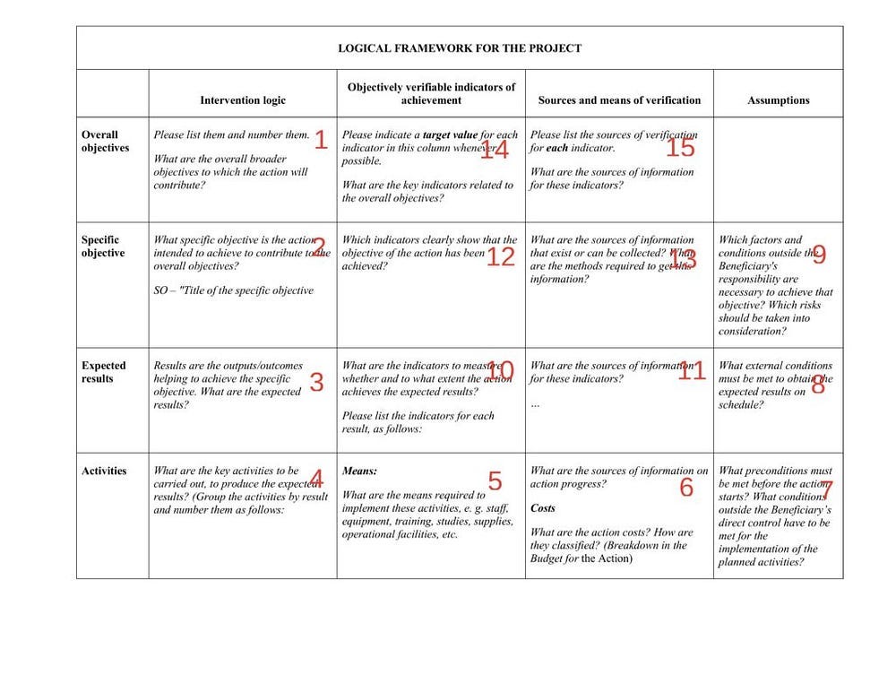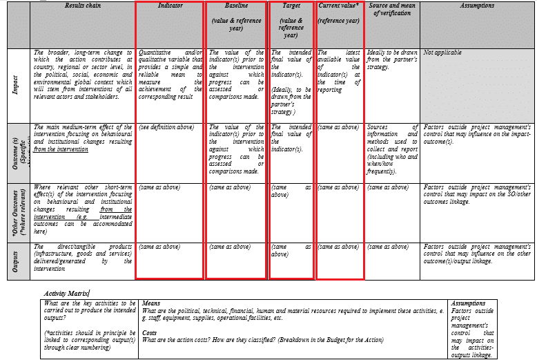 With the introduction of the IPA II programming period, a new version of the Logical Framework Matrix was adopted. In essence, this updated template is no different from the original format — the only significant change is that the performance indicator column has been divided into four parts. The main purpose of this change is to emphasize the importance of indicators and to facilitate the monitoring and evaluation process.